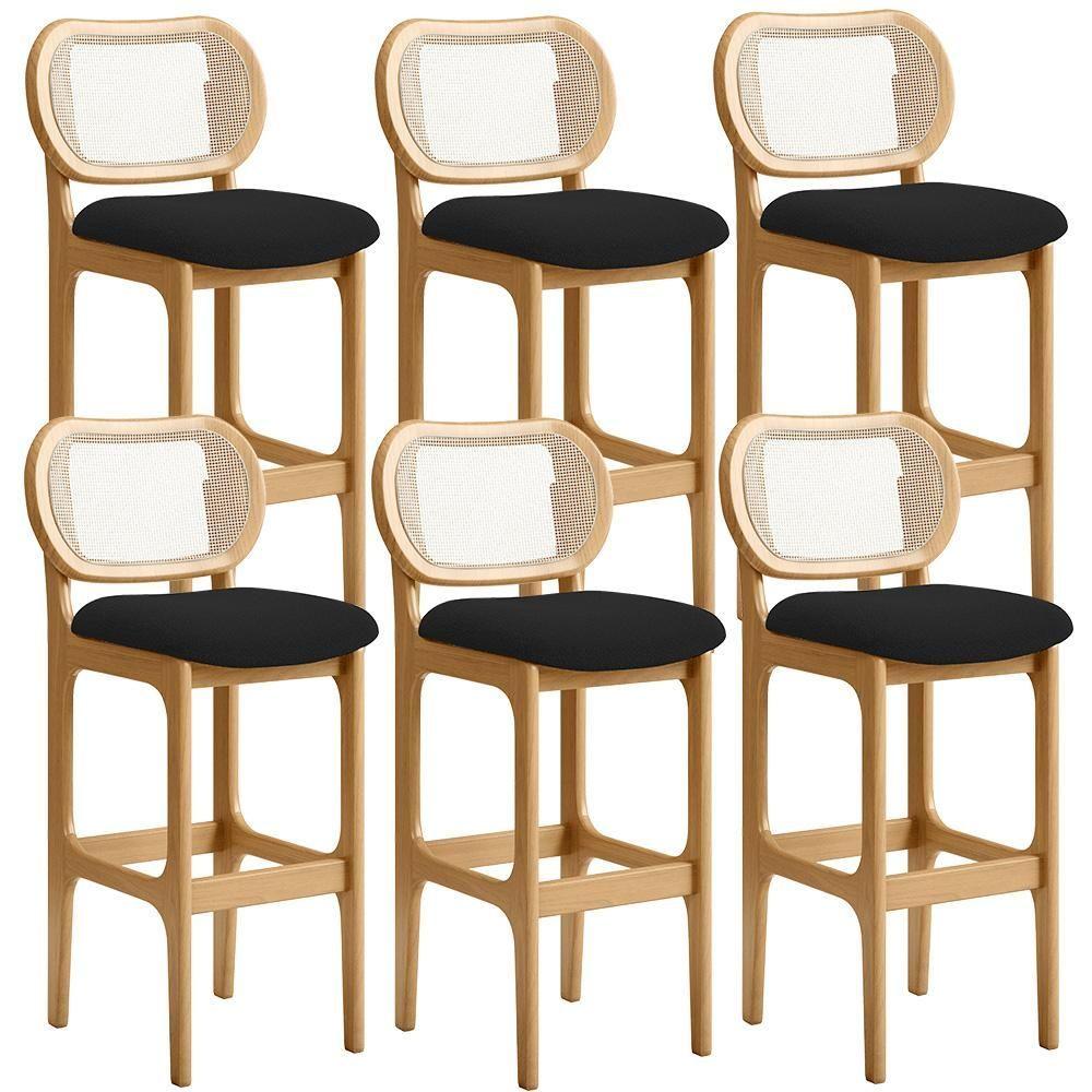 Kit 06 Banquetas Altas Para Cozinha Bancada Sala Tela Betta Fixa L02 Bouclê Preto - Lyam