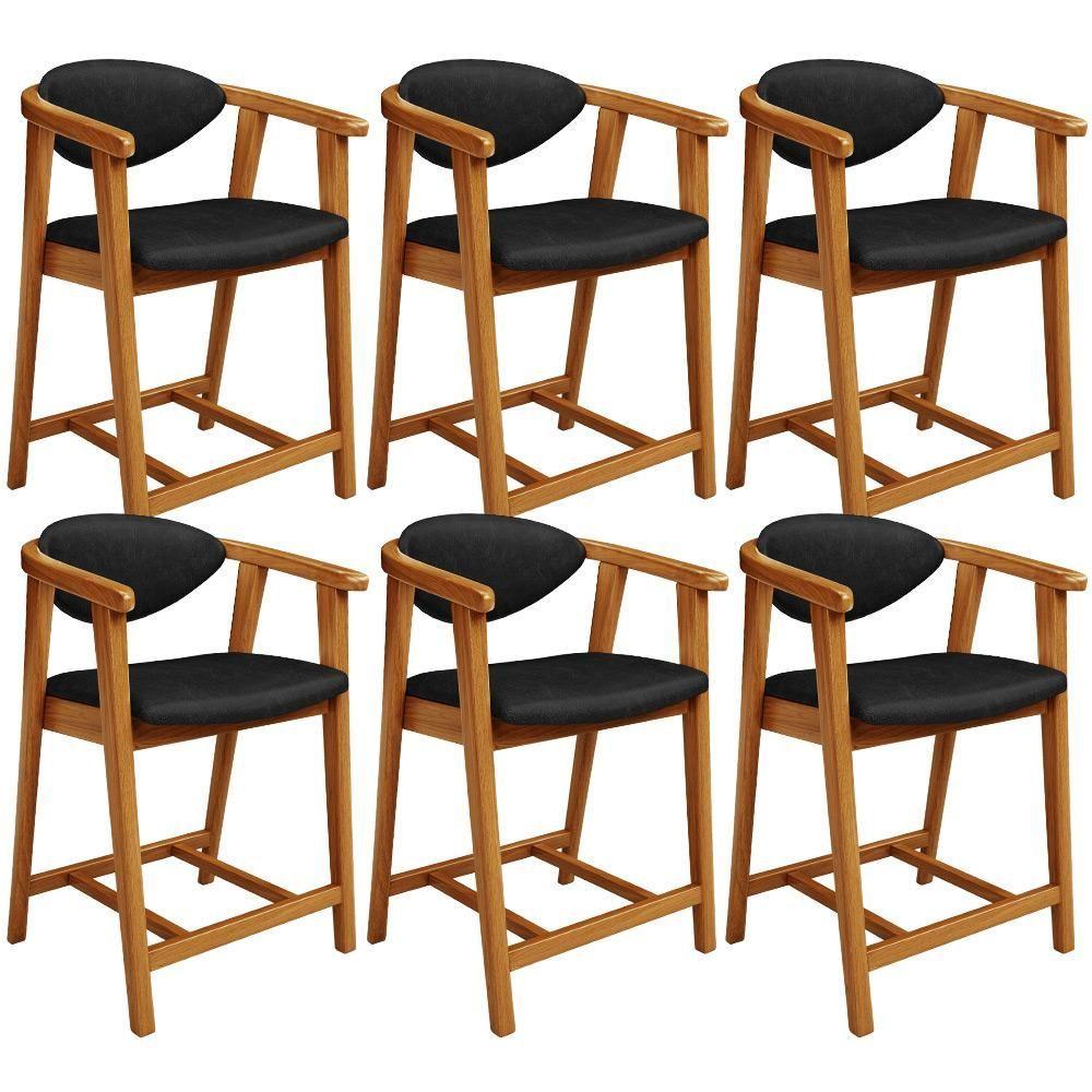 Kit 06 Banquetas Baixa Para Cozinha Sala Jantar Bancada Cecília L02 Couríssimo Preto - Lyam Decor