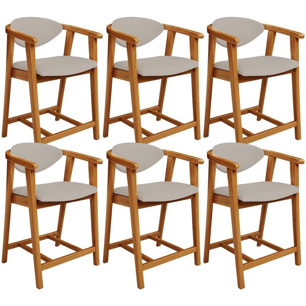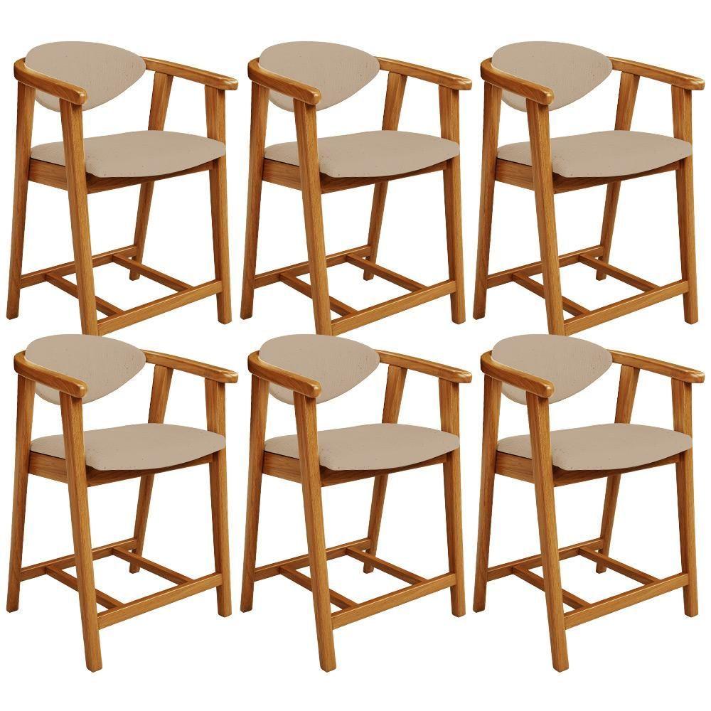 Kit 06 Banquetas Baixa Para Cozinha Sala Jantar Bancada Cecília L02 Linho Bege - Lyam Decor