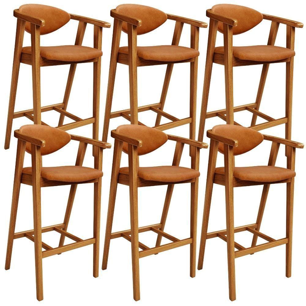 Kit 06 Banquetas Baixa Cozinha Bancada Cecília L02 Tecido Terracota