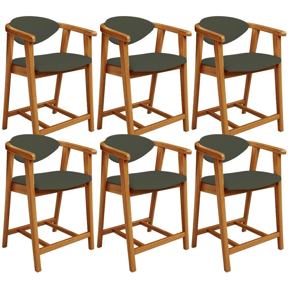 Kit 06 Banquetas Baixa Cozinha Bancada Cecília L02 Couríssimo Verde Musgo Lyam Decor