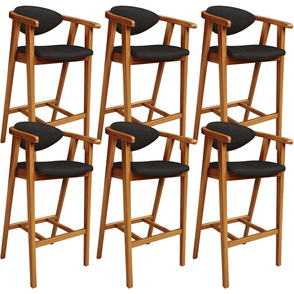 Kit 06 Banquetas Alta Cozinha Bancada Bar Sala De Jantar Fixa Cecília L02 Couríssimo Preto - Lyam