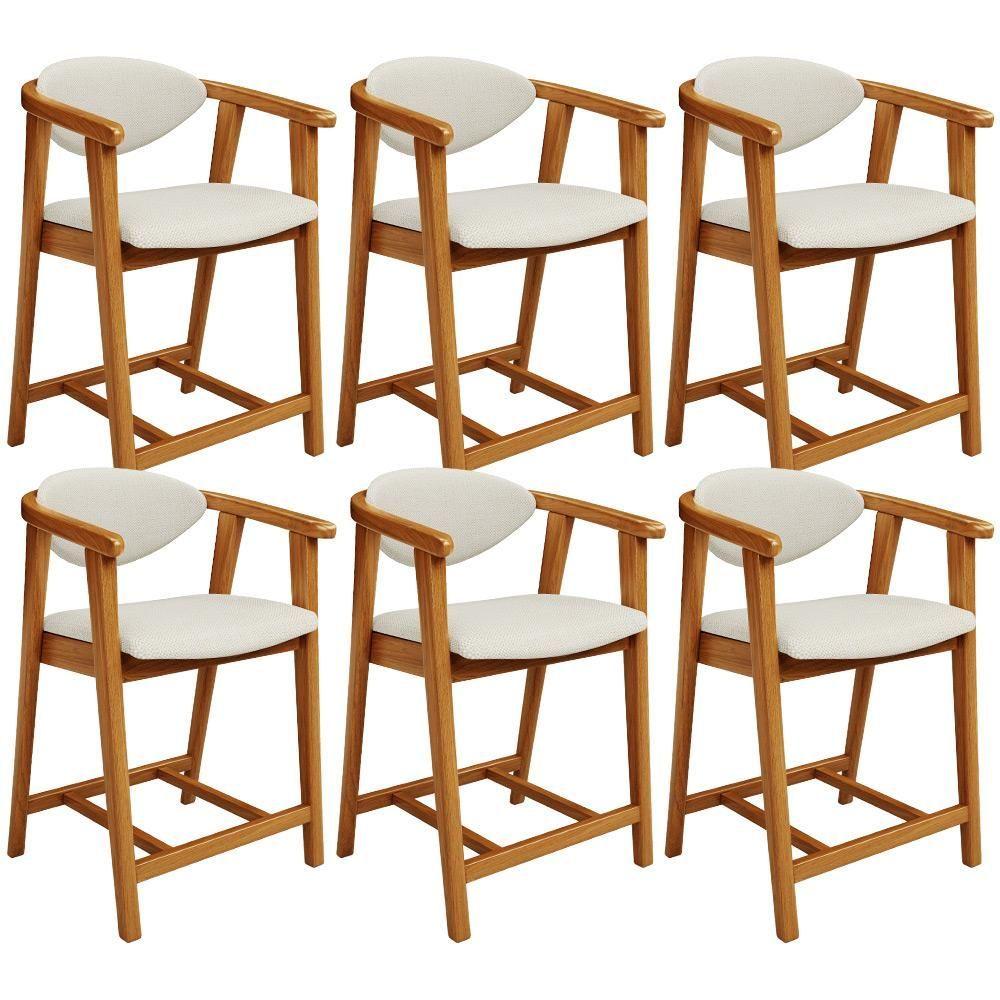 Kit 06 Banquetas Baixa Cozinha Sala De Jantar Bancada Cecília L02 Linho Champanhe - Lyam Decor