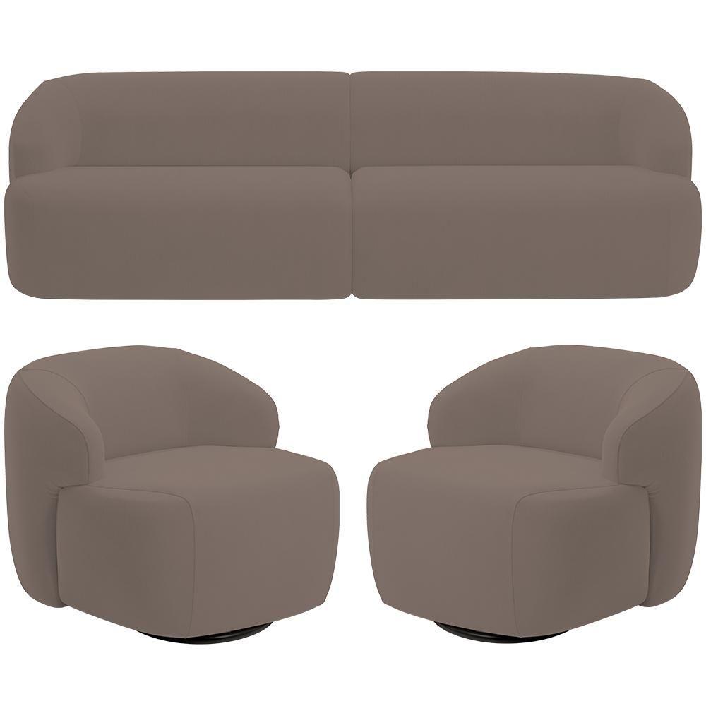 Sofá 3 Lugares Curvo Orgânico Com 02 Poltronas Living 220cm Barolo L06 Veludo Marrom