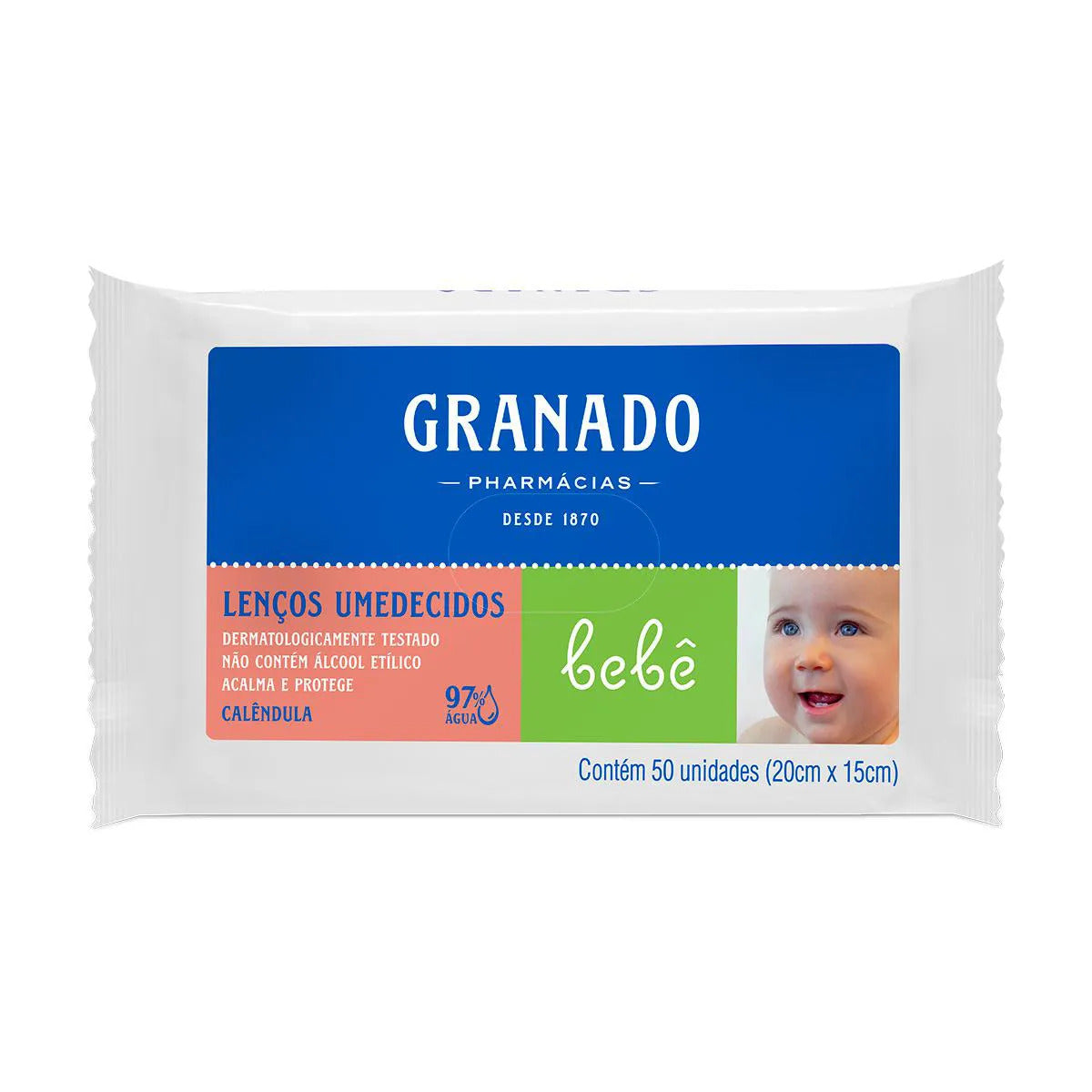 Lenço Umedecido Granado Bebê Calêndula 97% Água Sem Álcool 50 Unidades