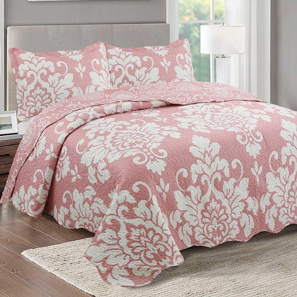 Kit Cobre Leito Colcha Daily King 3 Peças Dupla Face Estampado - Rubi Floral - 100% Poliéster