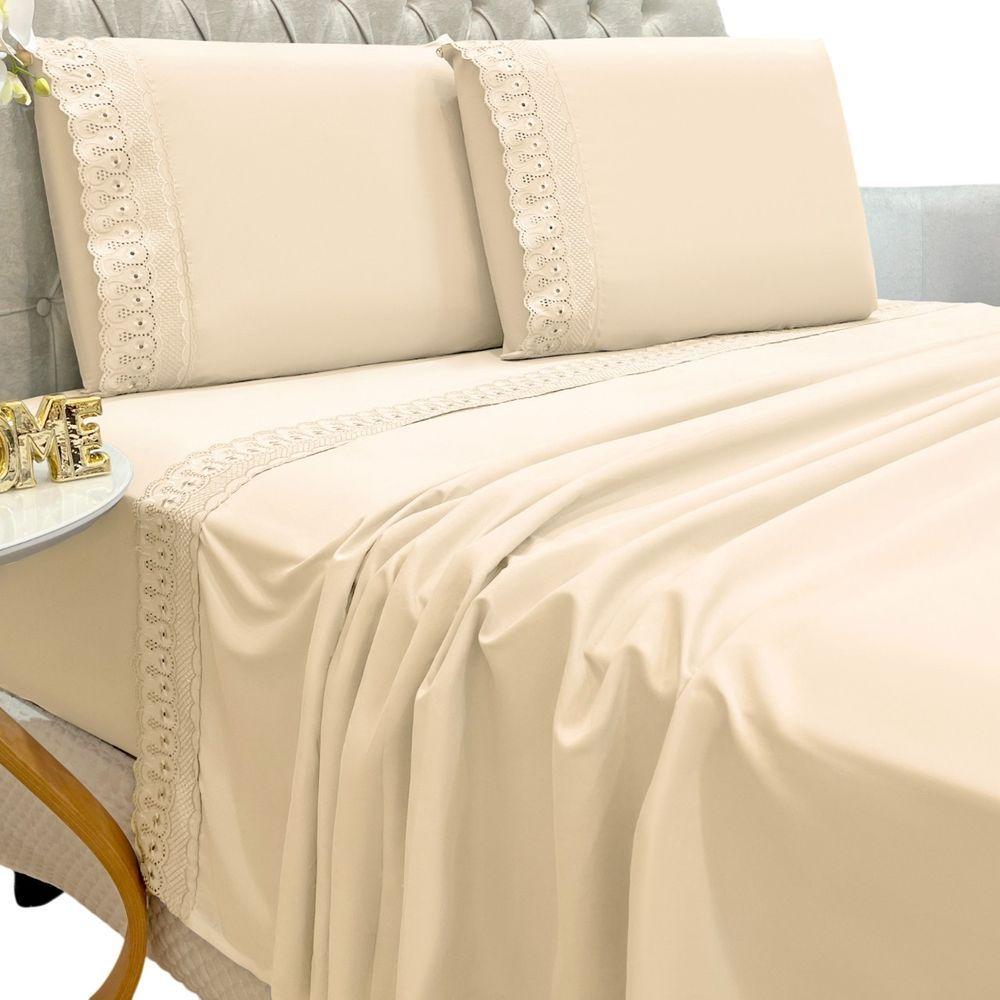 Jogo Lençol Queen Grace Bordado 4pç 100% Poliéster - Areia