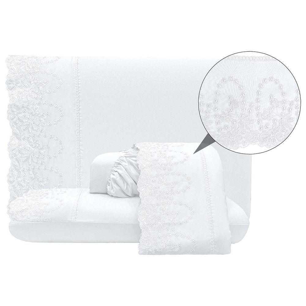Jogo De Cama Lençol Casal Top Line 4 Peças - Branco - 100% Poliéster