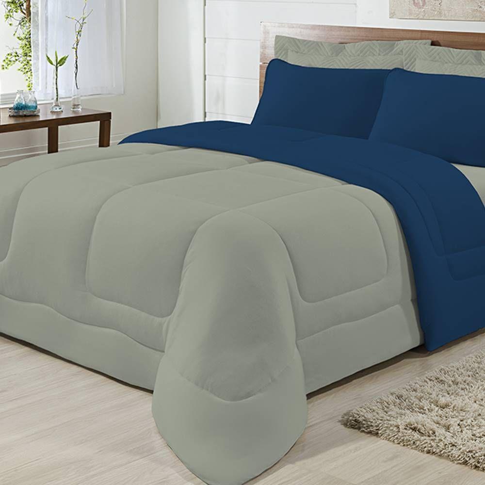 Edredom Dupla Face 100% Algodão Malha Queen Gran Moratta 01 Peça - Marinho/ Cinza