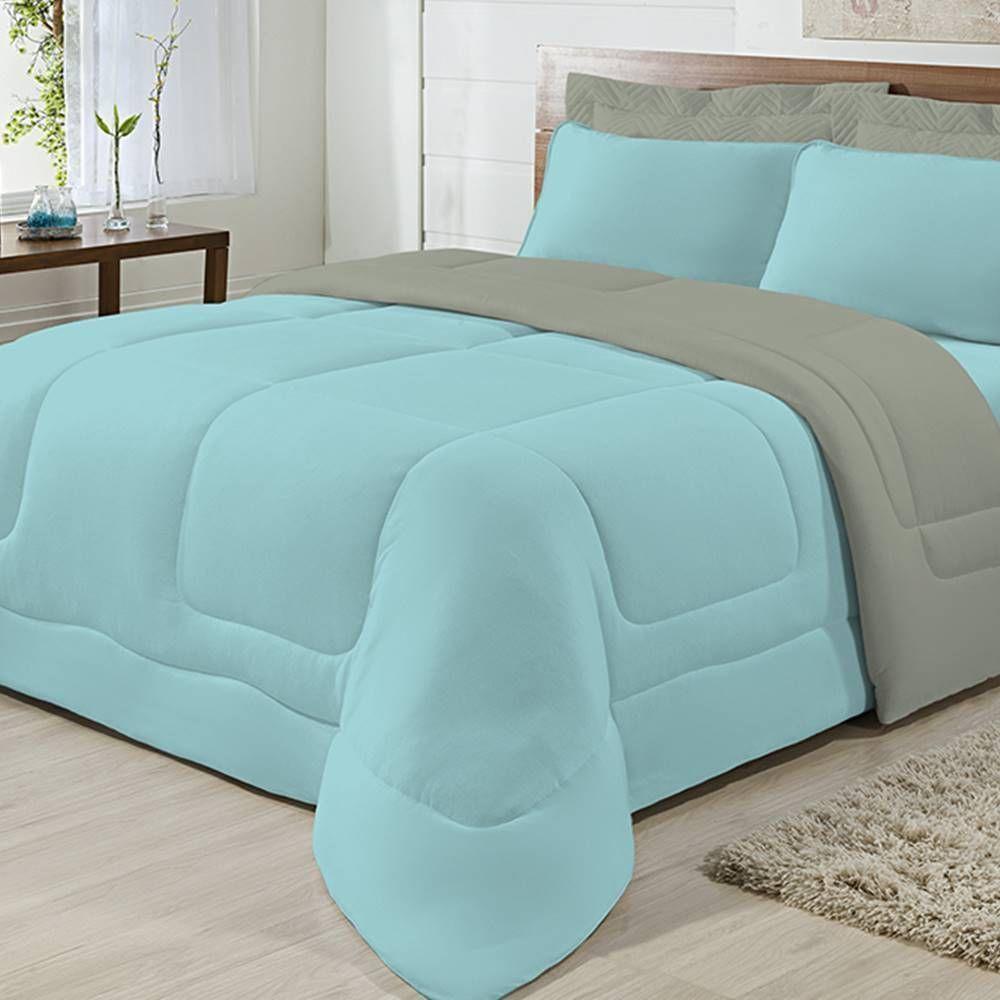 Kit Cobre Leito Colcha Diplomata King Dupla Face 3 Peças - Cinza