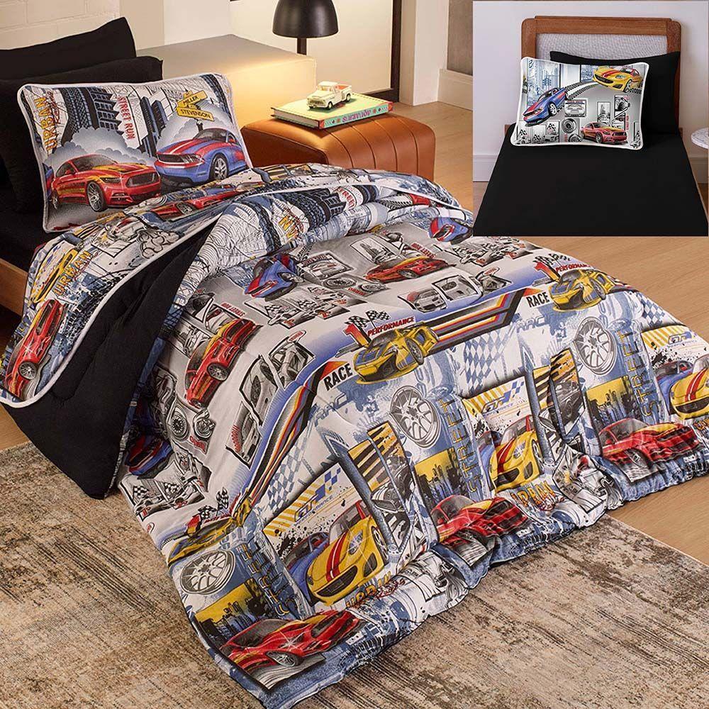 Kit Coordenado Edredom Com Lençol Solteiro Mymo - Game - 100% Algodão
