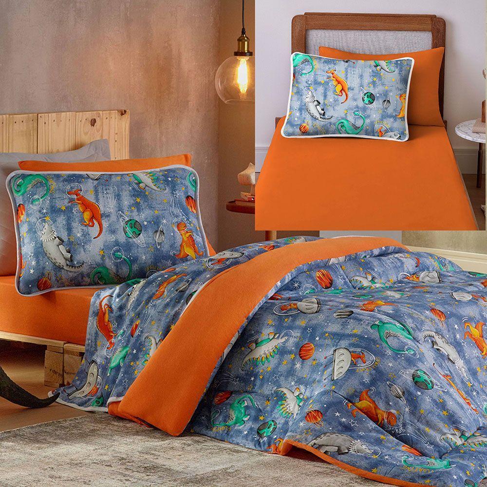 Kit Coordenado Edredom Com Lençol Solteiro Mymo - Dinossauro - 100% Algodão