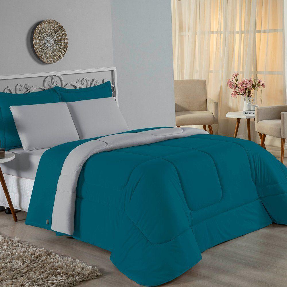 Edredom Casal Nobre 1 Peça Dupla Face 2,00m X 2,20m Malha 100% Algodão - Petróleo / Cinza