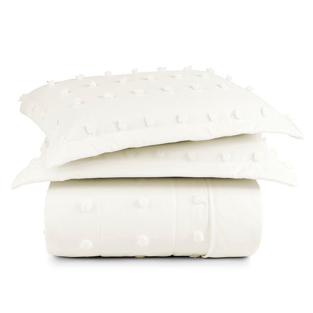 Cobre Leito Queen Poppy Micropercal 300 Fios Pompom 03 Peças 100% Poliéster - Off White
