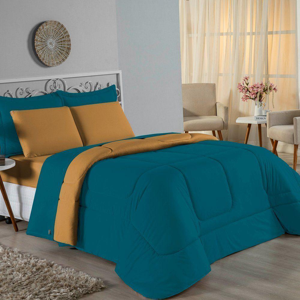 Edredom Queen Nobre 1 Peça Dupla Face 2,20m X 2,40m Malha 100% Algodão - Petróleo / Cobre
