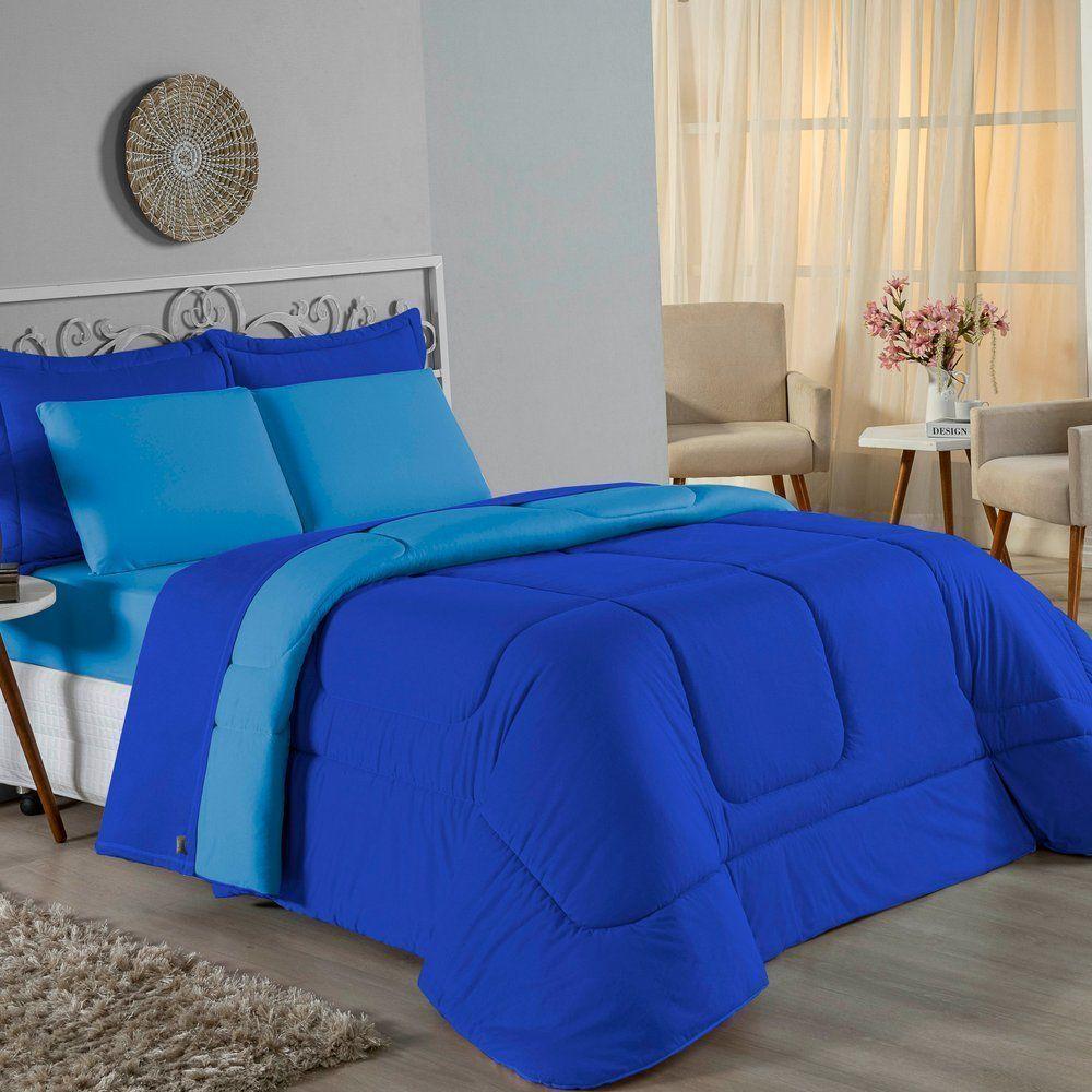Edredom Queen Nobre 1 Peça Dupla Face 2,20m X 2,40m Malha 100% Algodão - Turquesa / Royal