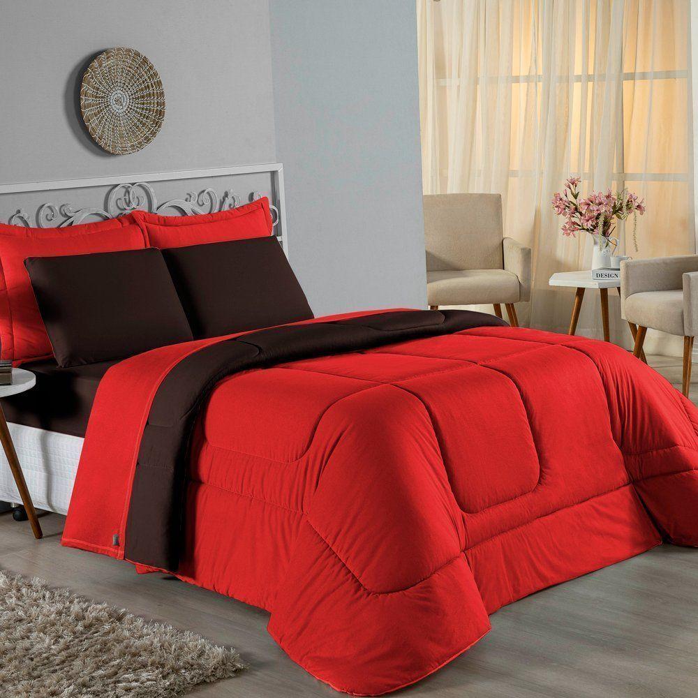 Edredom Queen Nobre 1 Peça Dupla Face 2,40m X 2,60m Malha 100% Algodão - Vermelho / Marrom