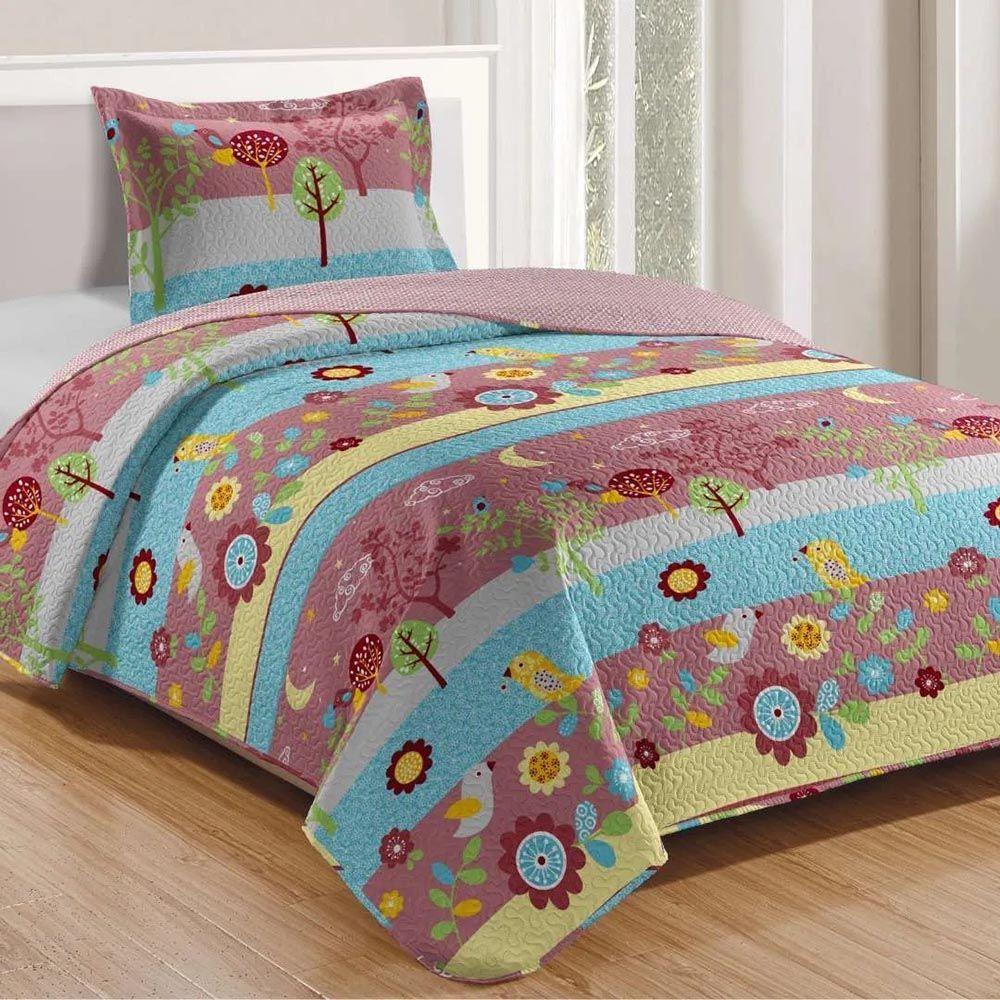 Kit Cobre Leito Colcha Magic Solteiro Infantil 2 Peças Microfibra 180 Fios - Birds Natureza - 100% Poliéster