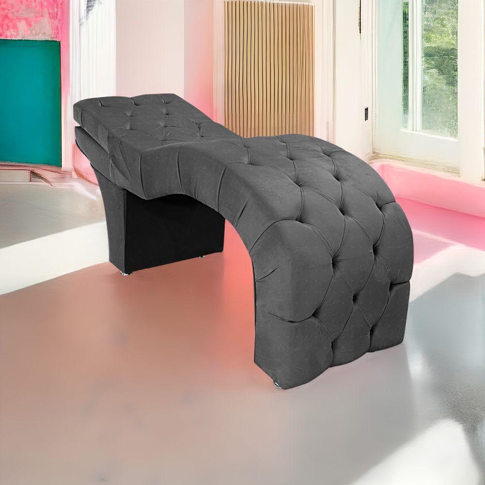 Maca Estética Com Encosto Dobrável Facial Capitonê Cílios Salão P02 Linho Cinza escuro