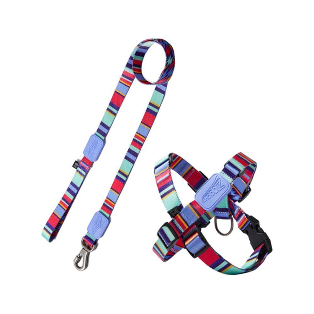 Peitoral Em X E Guia Para Cães Raios E Listras Violeta - M