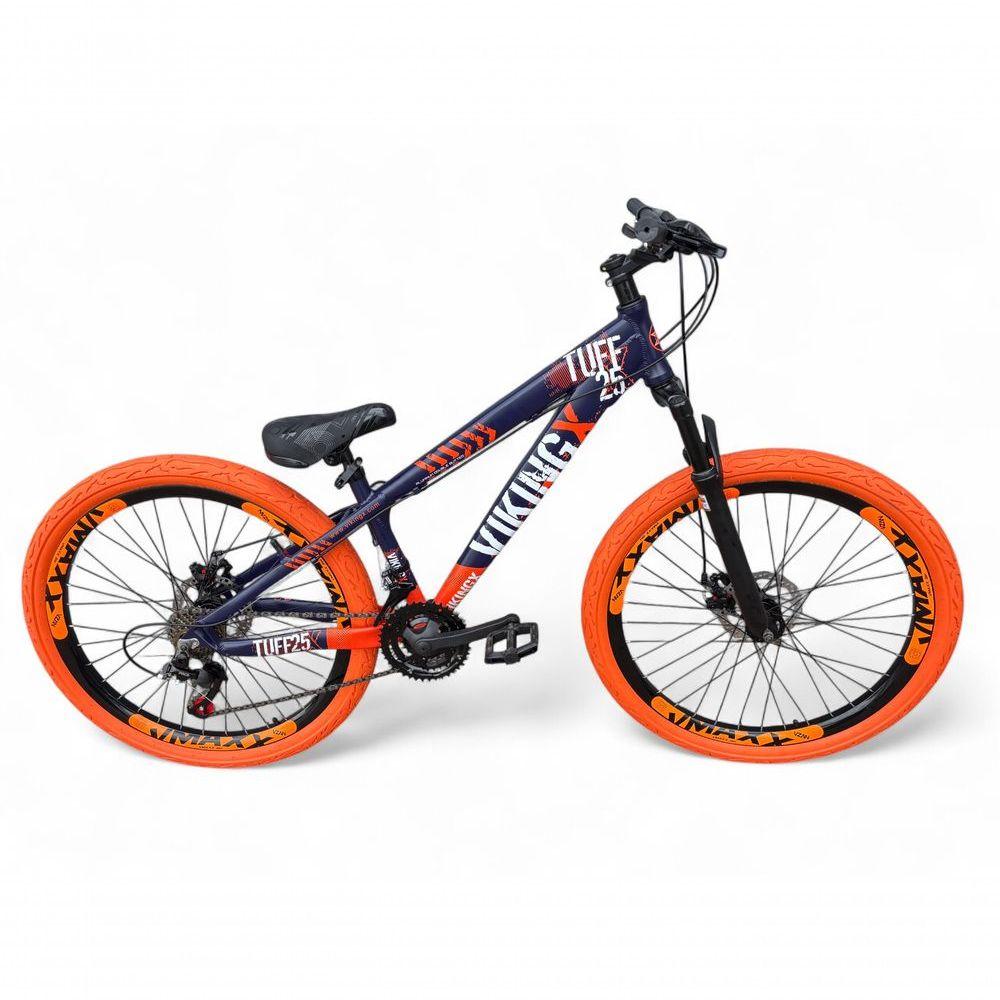 Bicicleta Aro 26 Vikingx Tuff X25 Freeride 21v Aros Vmaxx Dh Freio A Disco Pneu Flame - Roxo-laranja
