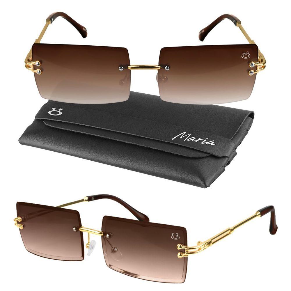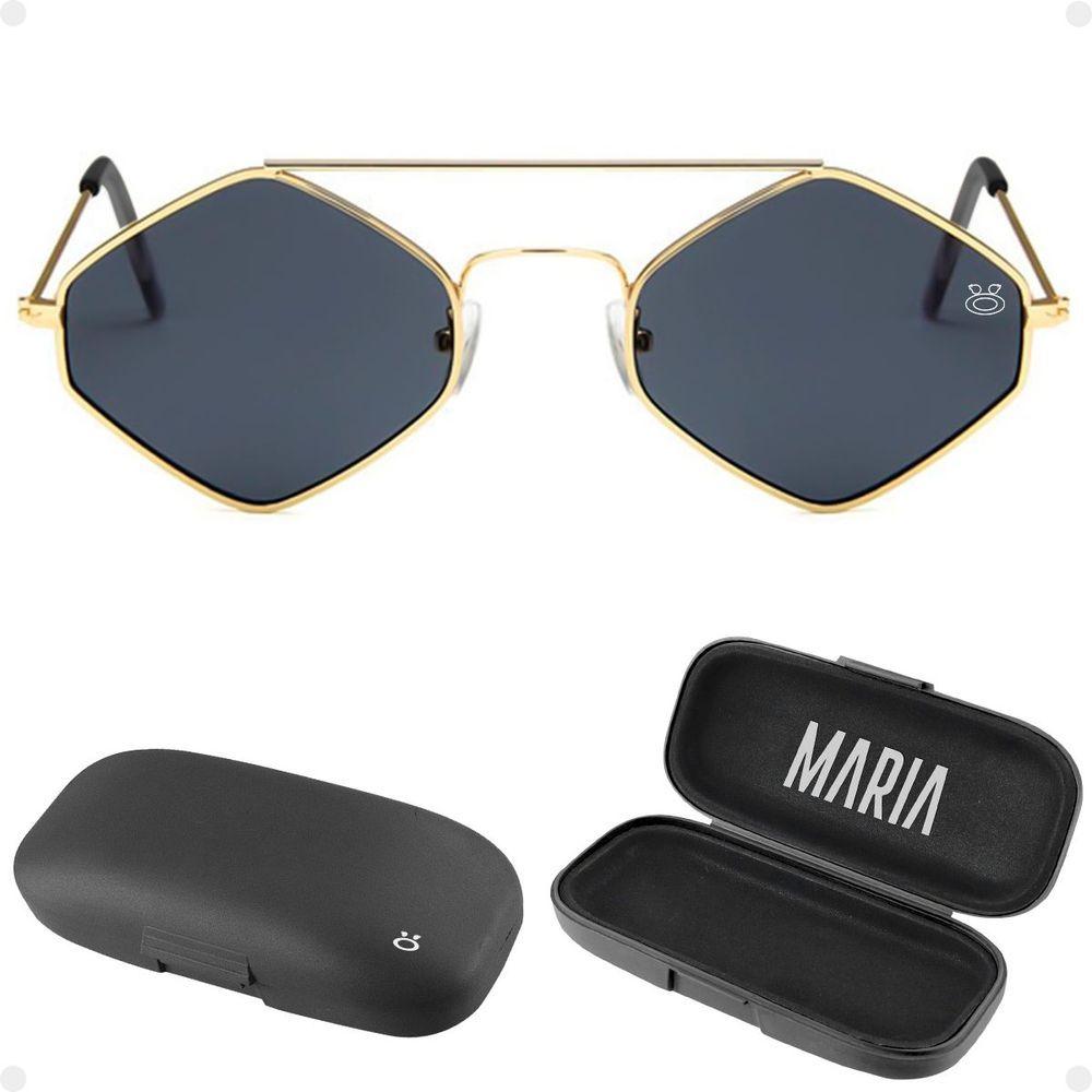 Oculos Sol Feminino Losango Aço Metal Proteção Uv + Case Maria Proteção Uv Moda Praia Presente Verão