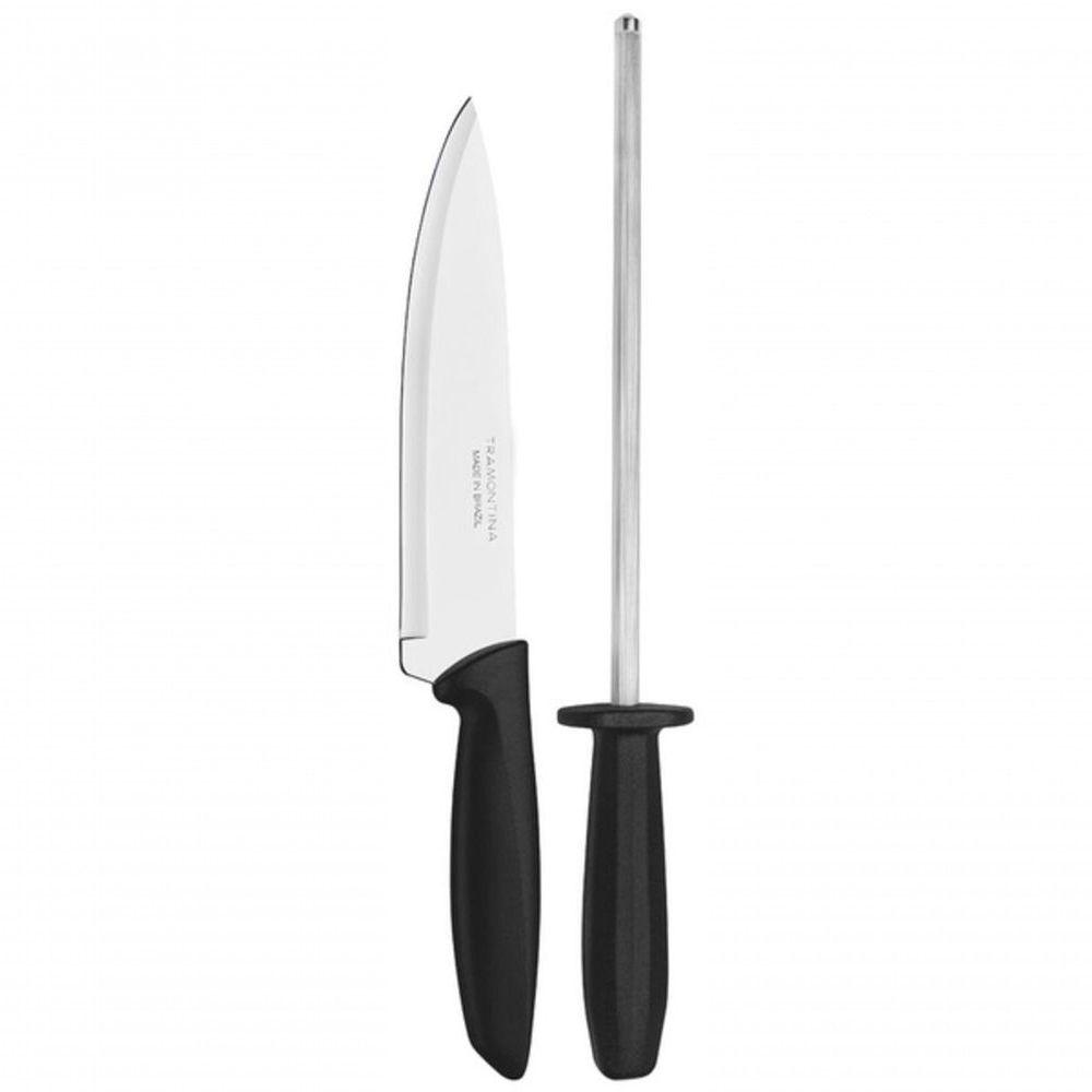 Jogo De Facas Com Chaira Tramontina Plenus 2 Peças Preto