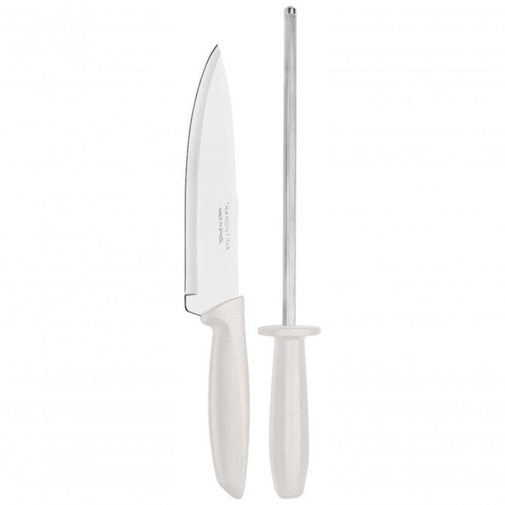 Jogo De Facas Com Chaira Tramontina Plenus 2 Peças Off White
