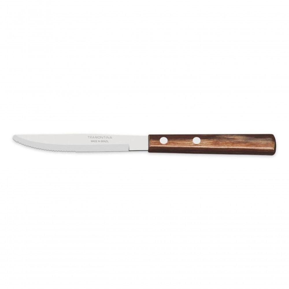 Faca De Mesa Tramontina 4 Inox Cabo Polywood Castanho