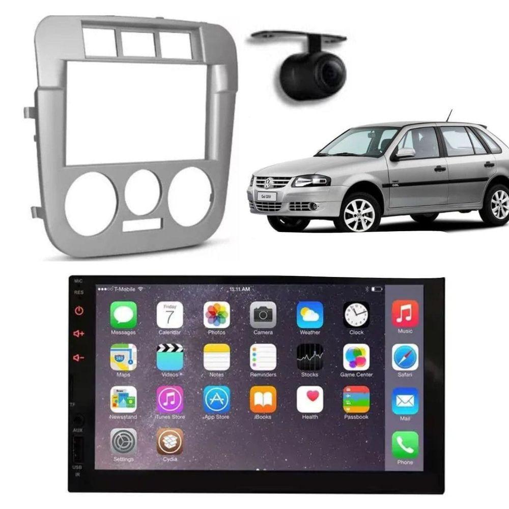 Central Multimídia 2 Din Mp5 Parati G4 Câmera Moldura Tela Prata