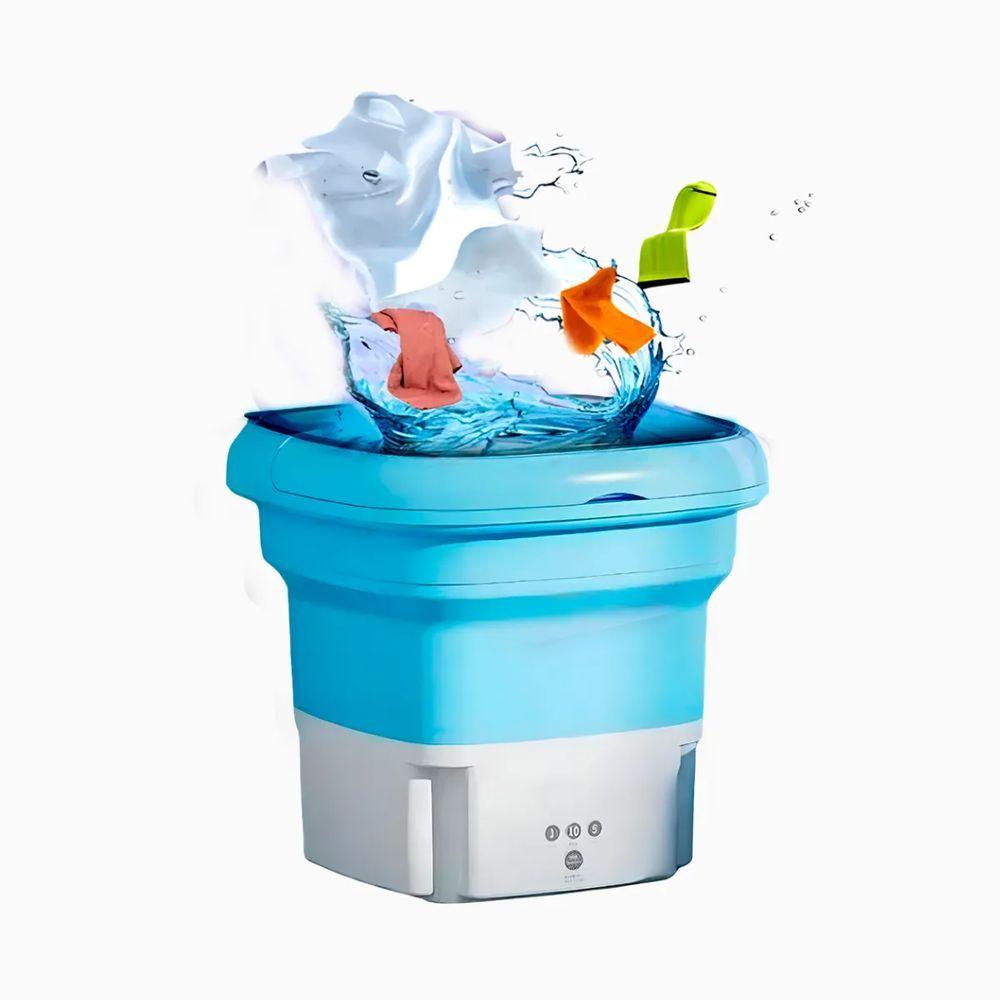 Mini Máquina De Lavar Roupa Portátil Dobrável - Azul