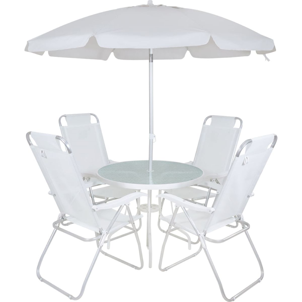 Conjunto Noronha Branco com Mesa 4 Cadeiras e Guarda Sol Bel