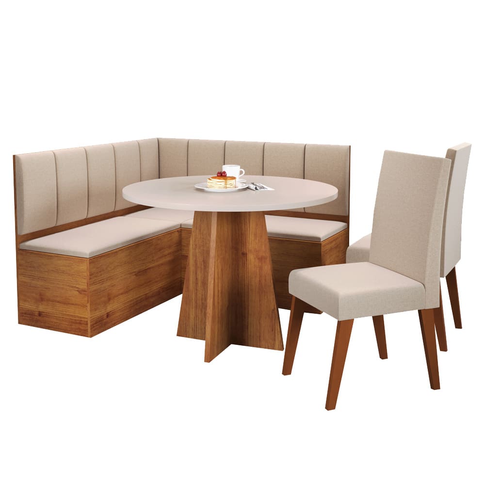 Canto Alemão Viero Patrick com 2 Cadeiras Milão - Mel/Bronze