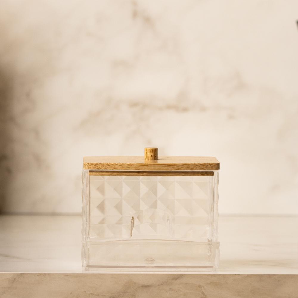 Porta Cotonete Lyor My Box de Acrílico Incolor 9,5cm x 9,5cm