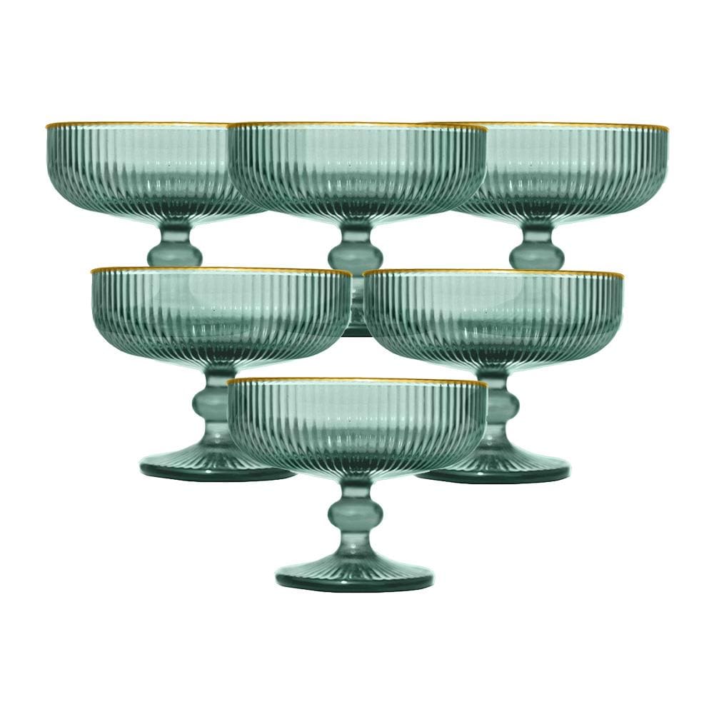 Conjunto de Taças para Sobremesa L`Hermitage Cameratta 310ml com Borda Dourada em Cristal Ecológico Verde - 6 Peças