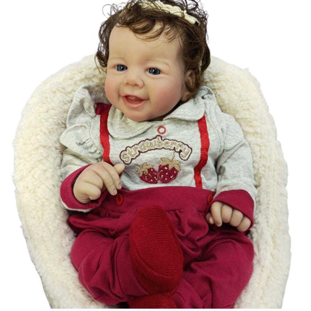 Bebê Reborn Menina Olhos Abertos Cabelo Implantado Fio A Fio Realista