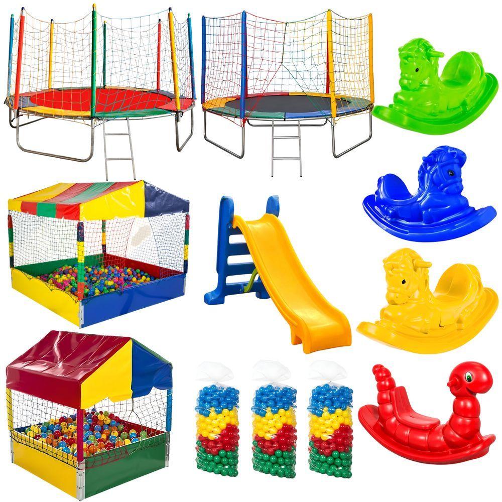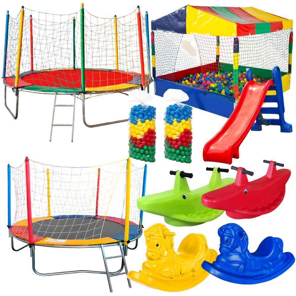 Kit Com Pula Pula Piscina De Bolinhas Escorregador E Gangorra Infantil