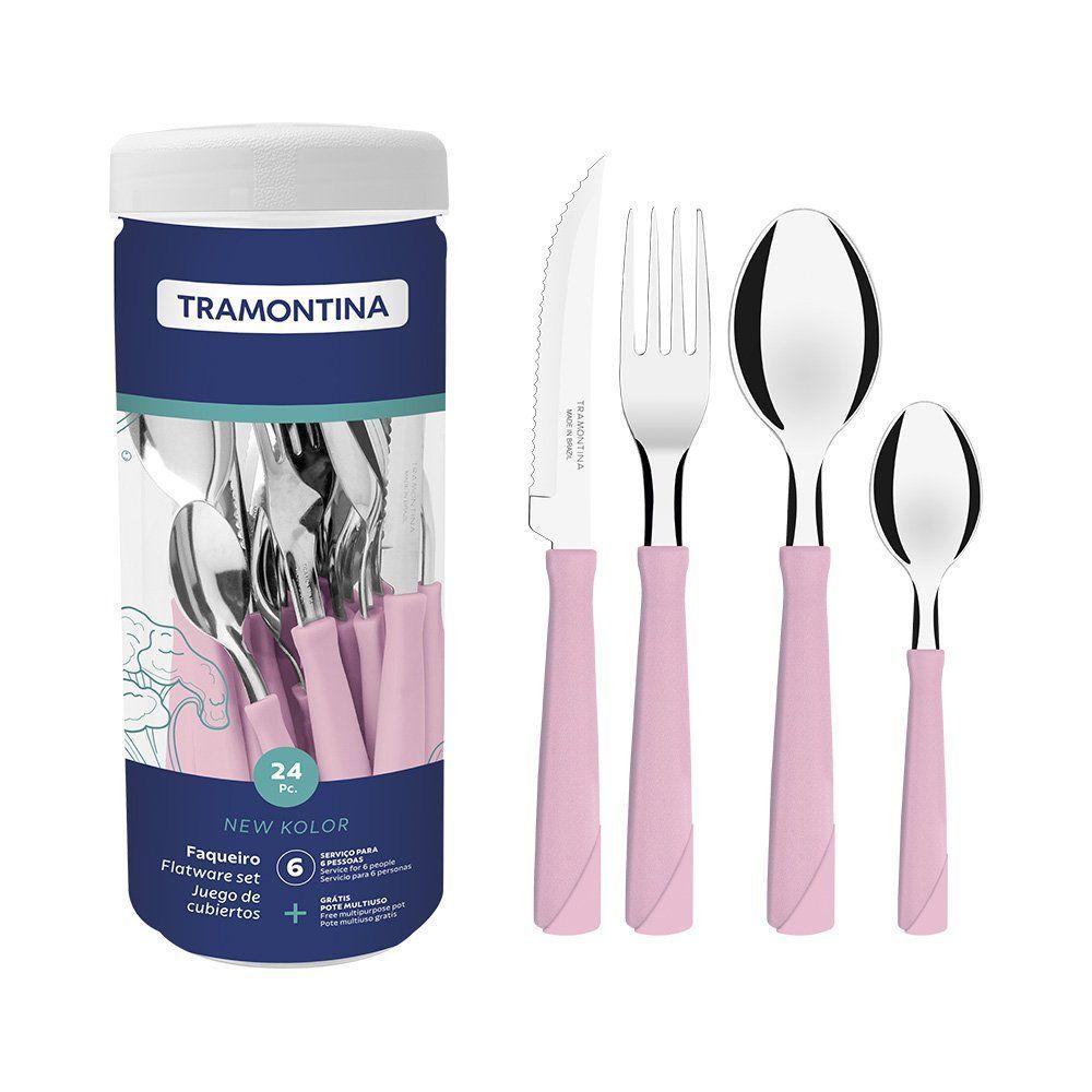 Jogo De Talheres 24 Peças Tramontina New Kolor 23198593 Rosa