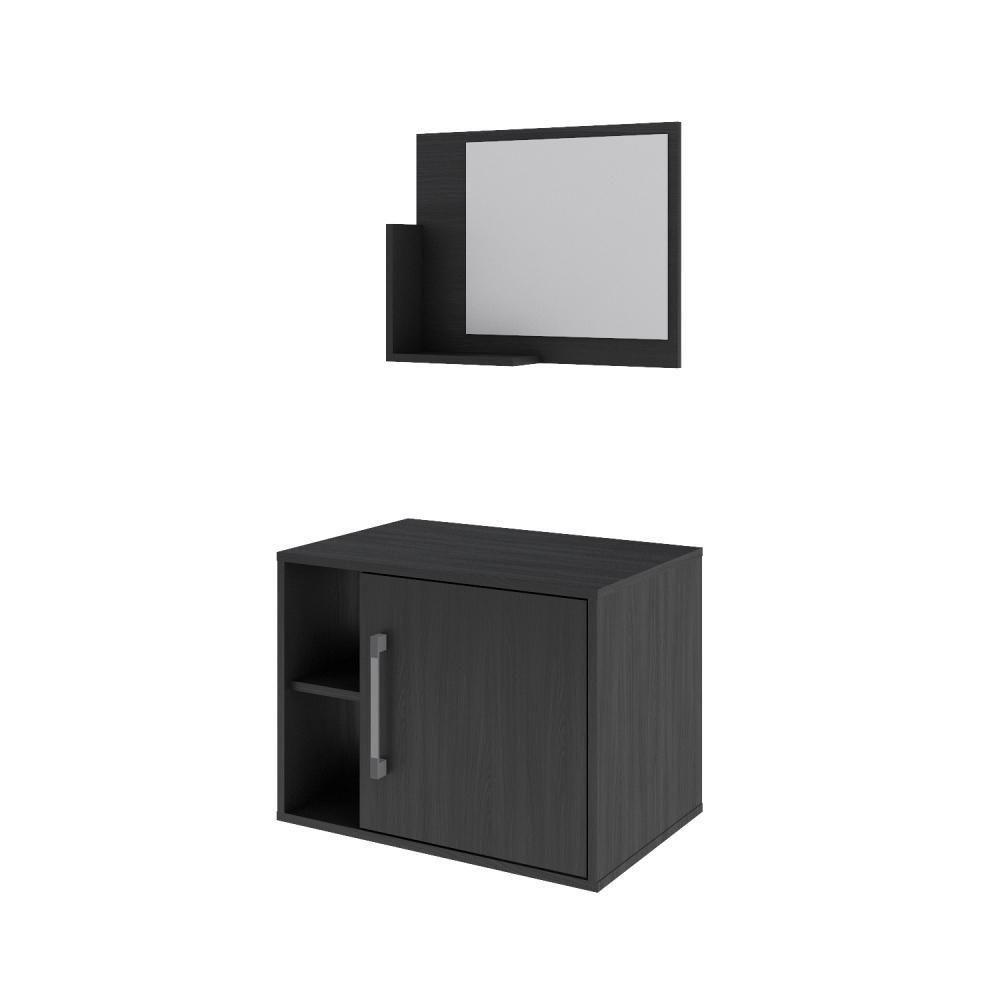 Conjunto Balcão E Espelheira Soft 600 Perffect Acetinado Carvalho Dark C-preto ônix