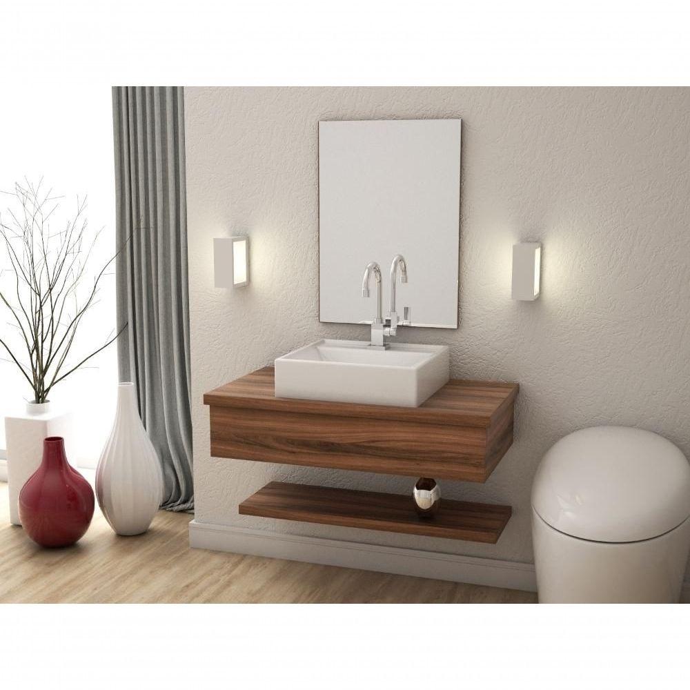 Conjunto De Banheiro Balcão Suspenso Bn3601 S- Cuba 80cm E Armário C- Espelho Bn3610 Amêndoa - Tecno Mobili