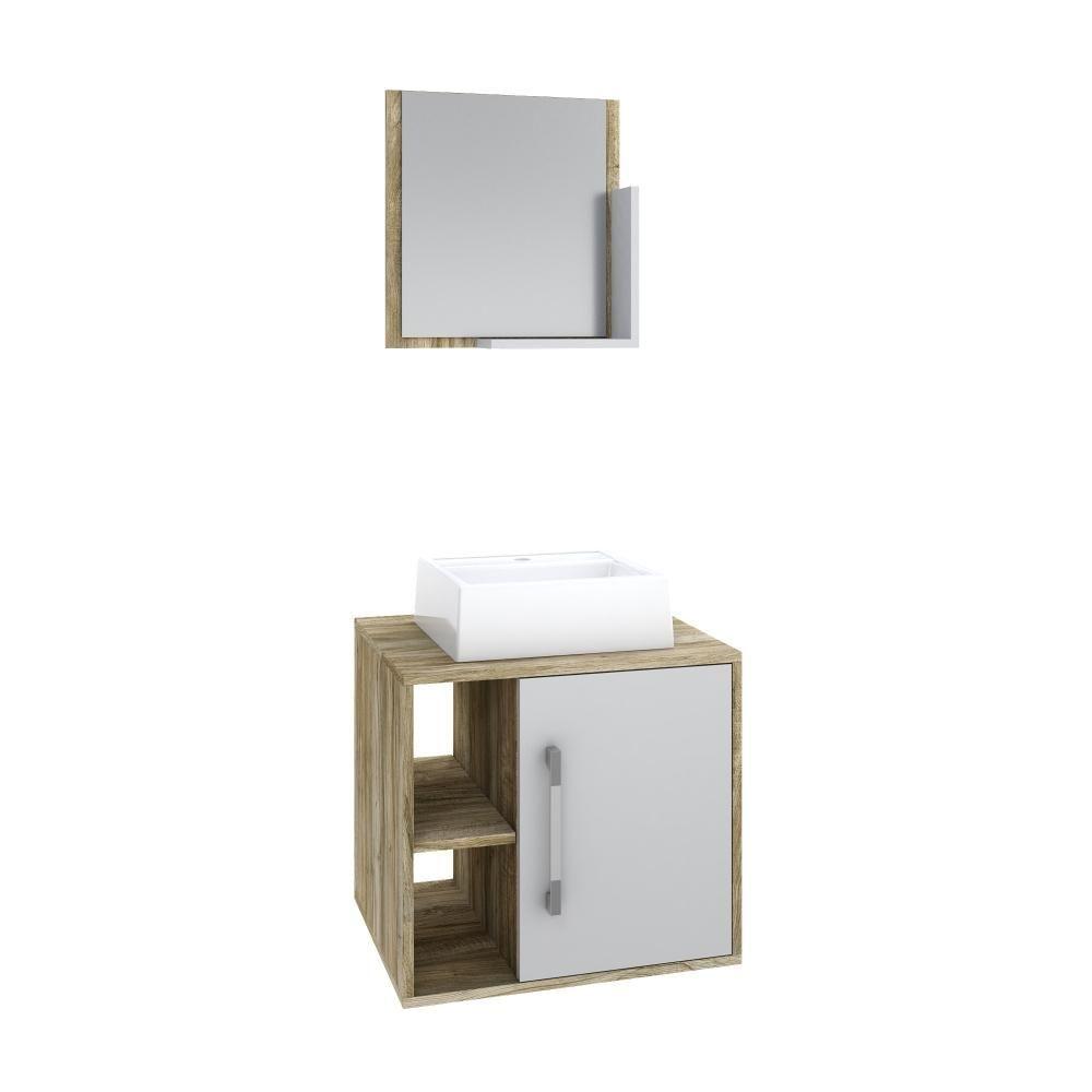Conjunto Balcão C-cuba Q32 E Espelheira Soft 500 Carvalho Carvalho C-branco Chess
