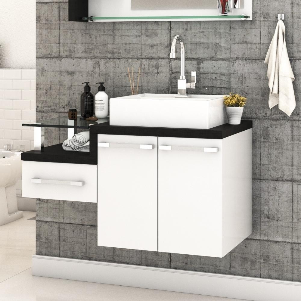 Gabinete Armario P-banheiro (balcao C-cuba Q355) Legno 650 Branco Chess C-preto ônix