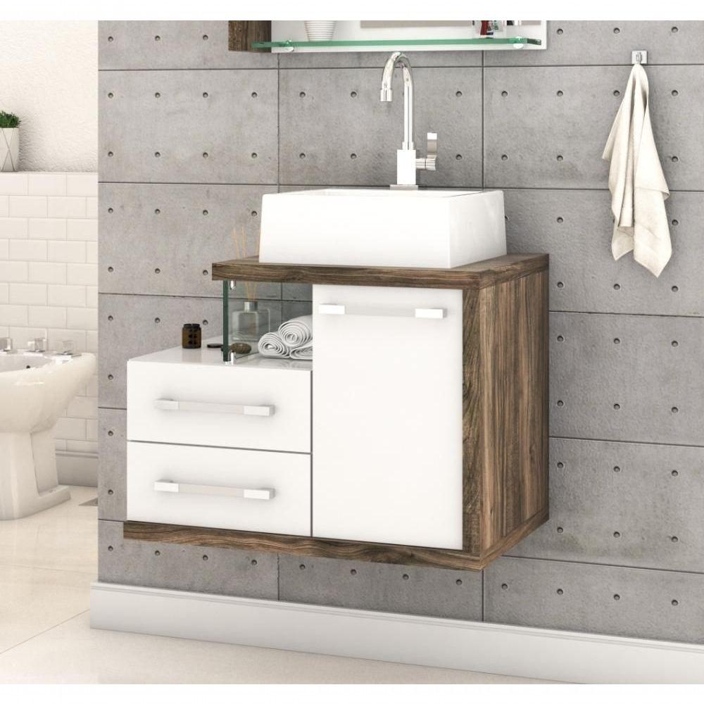 Gabinete Armario P-banheiro (balcao C-cuba Q355) Legno 650 Branco Chess C-carvalho Dark