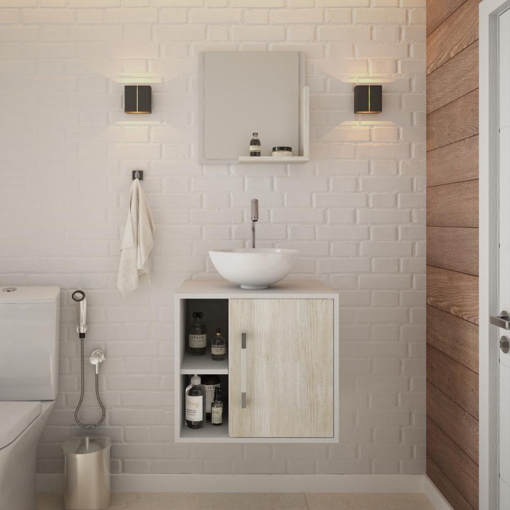 Kit De Banheiro Armário Bn3614 60cm E Balcão Suspenso Bn3601 80cm Pia Amêndoa Tecno Mobili