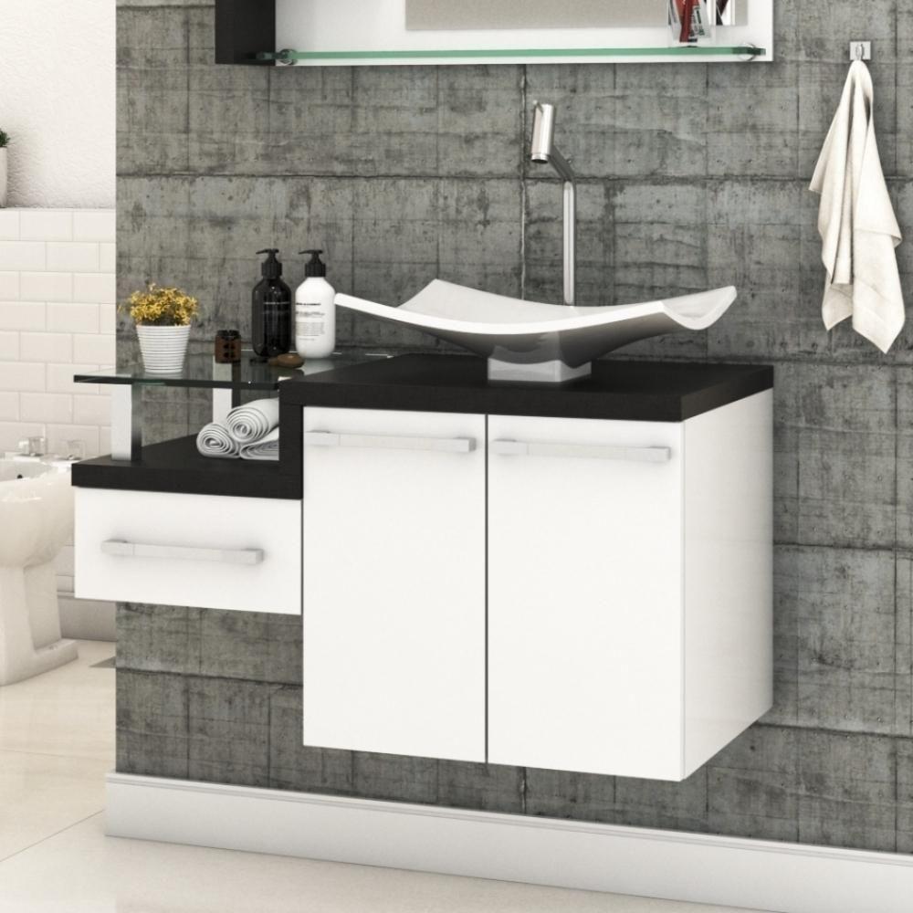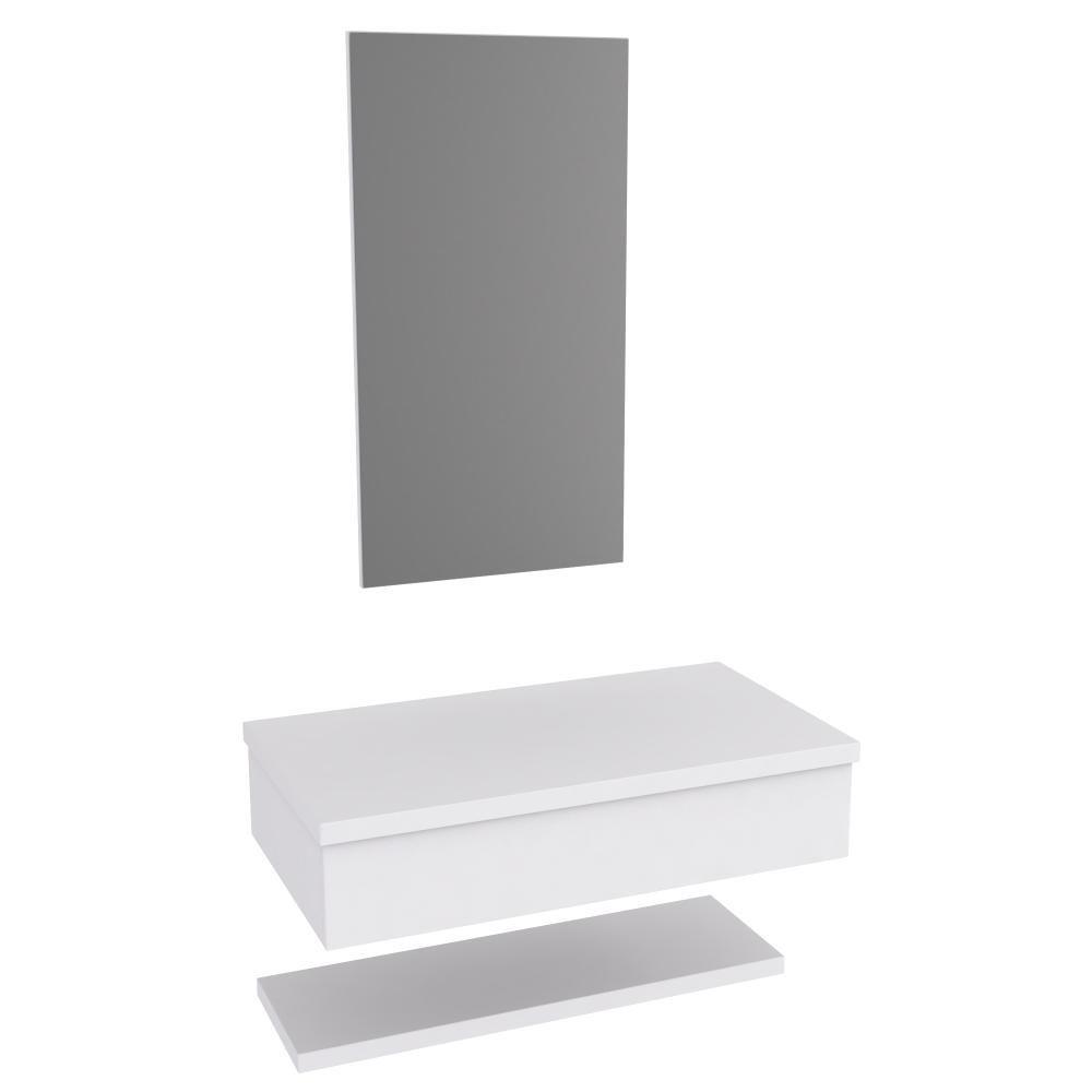 Conjunto De Banheiro Balcão Suspenso Bn3601 S- Cuba 80cm E Armário C- Espelho Bn3609 Branco - Tecno Mobili