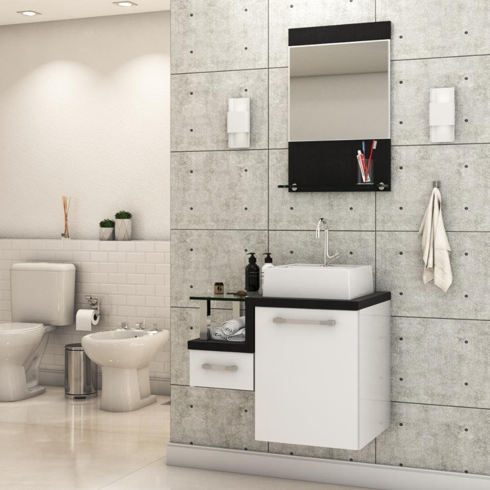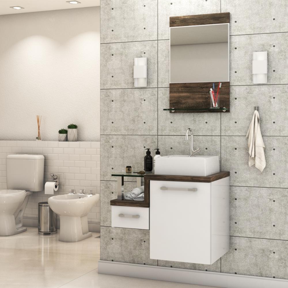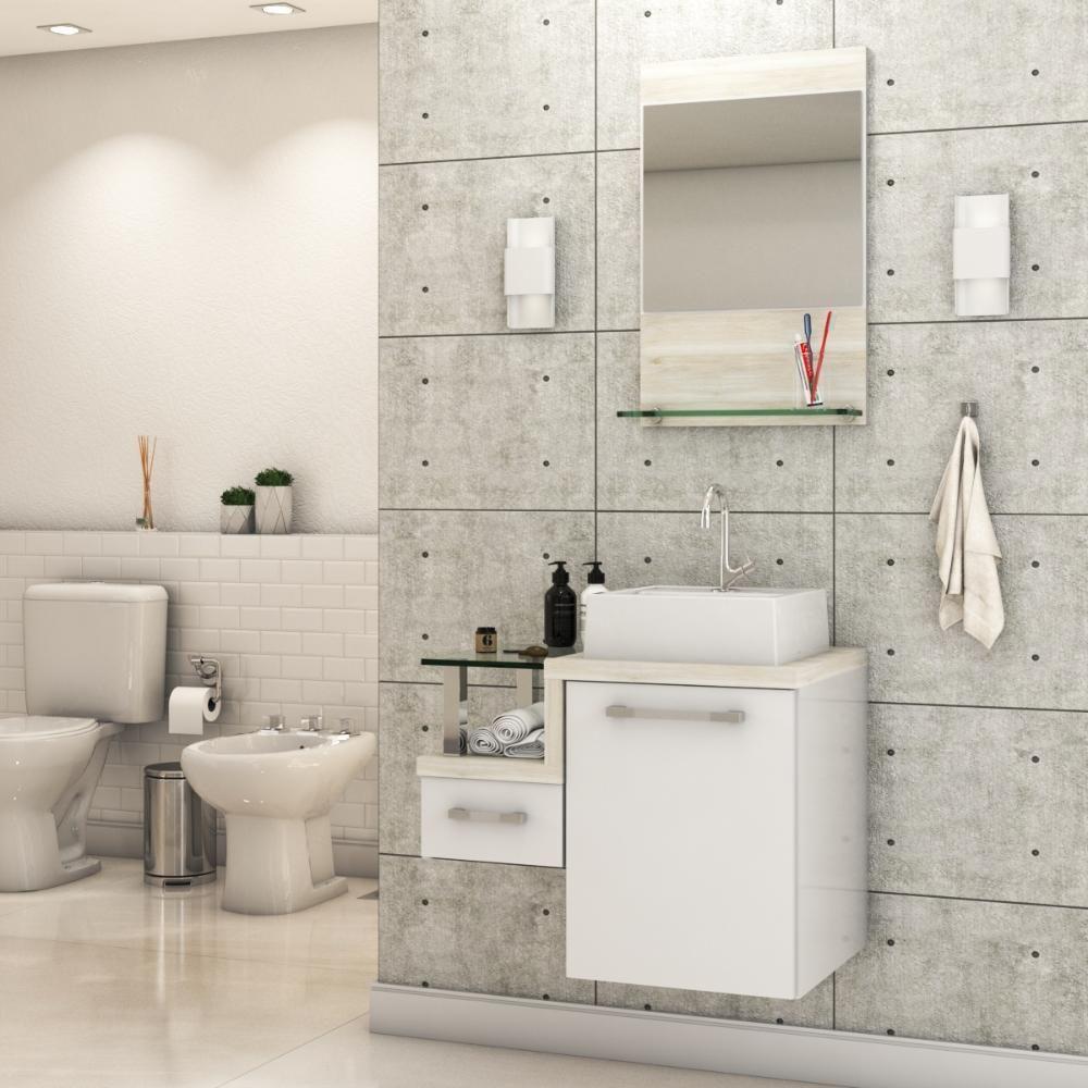 Gabinete Banheiro Com Cuba E Espelheira 45cm Branco