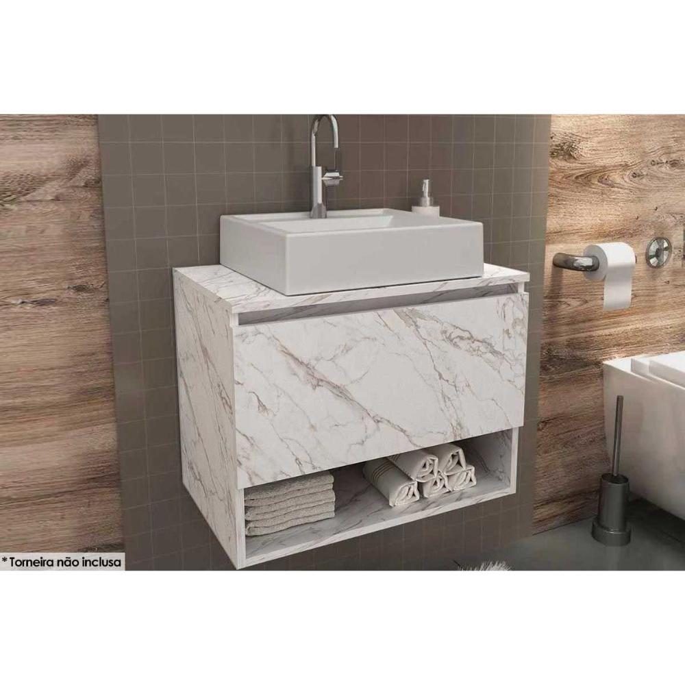 Conjunto De Banheiro Balcão Suspenso Bn3606 C- Cuba Pia Bn3600 60cm Cor Mármore Branco - Tecno Mobili
