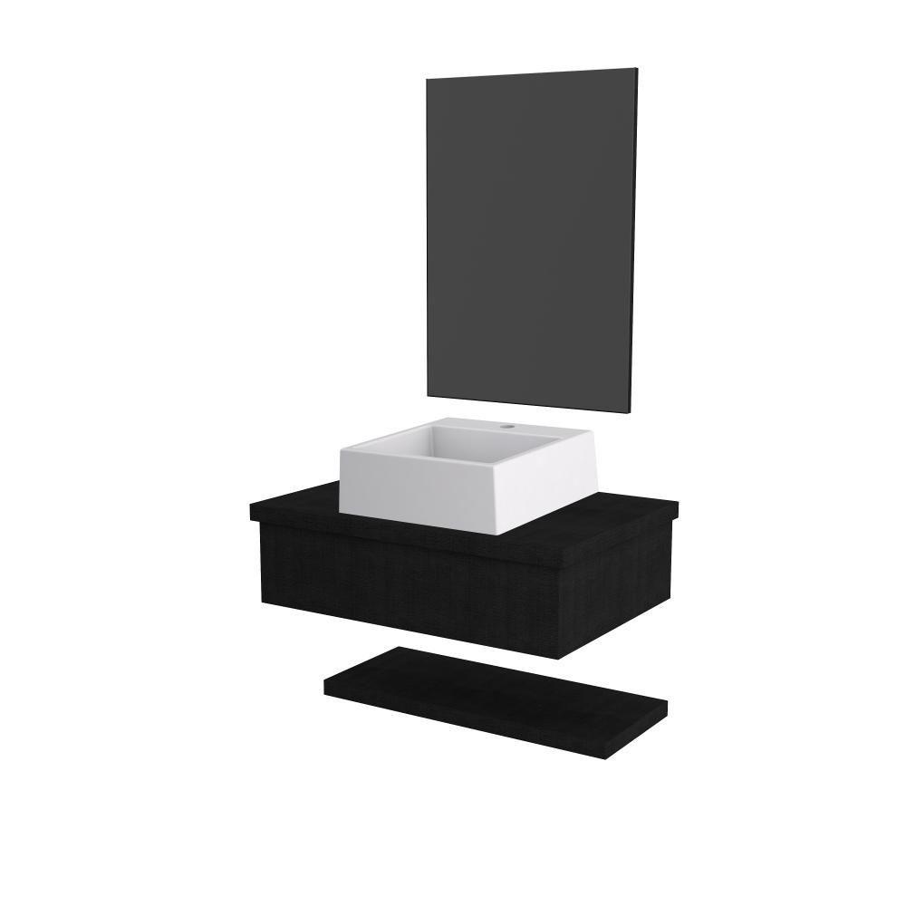 Conjunto Bancada C-cuba Q355, Prateleira E Espelheira Metrópole 606 Preto ônix Snow