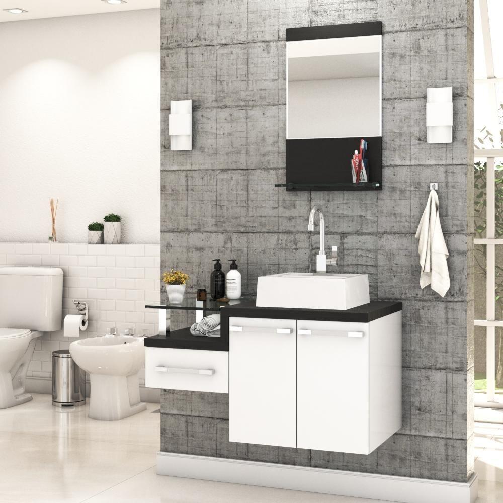 Gabinete Banheiro Com Cuba E Espelheira 60cm Branco/preto