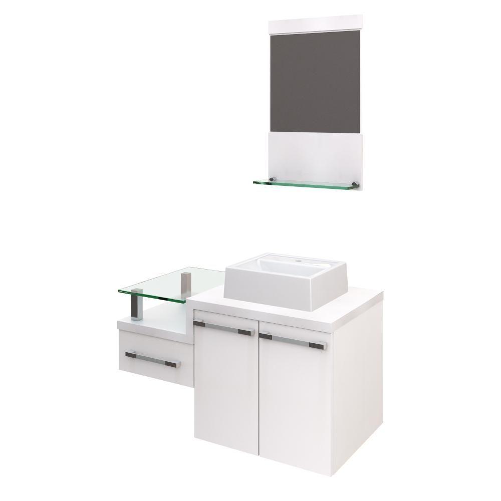 Conjunto Bancada C-cuba Q355, Prateleira E Espelheira Metrópole 606 Perffect Acetinado Branco Chess